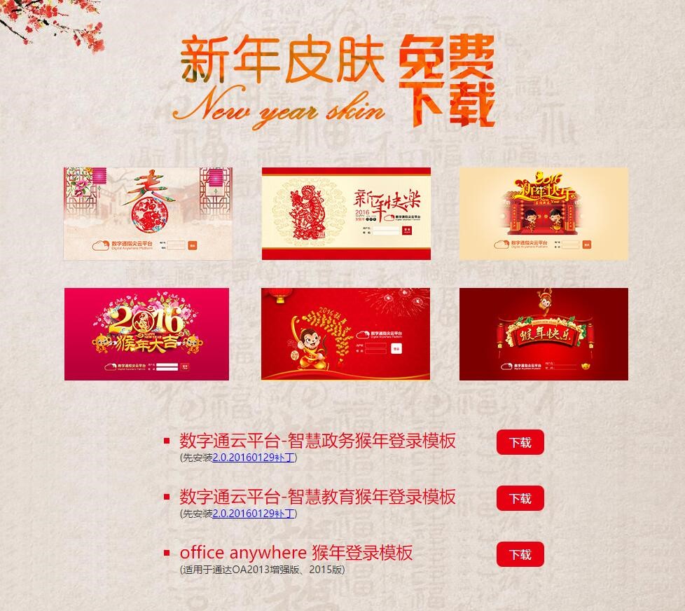 数字通设计师、工程师历经十几天的紧张制作及调试,终于迎来了智慧政务、智慧校园新年登陆界面的上线。目前,智慧政务、智慧校园以及office anywhere这三款产品的新年登陆界面均可下载使用。在新年前换上一套崭新的新年皮肤,迎接2016的到来。在此,数字通携全体员工祝所有人新年快乐!猴年大吉!