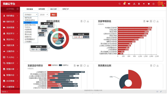 传统党建老办法不管用,新办法不会用现象;党组织日常考核不到位;党组织功能不与时俱进等等问题。管理、考核诸多方面的“真空地带”为现今党建工作的提升带来新的挑战。 中科数字通凭借多年在党政机关耕耘服务获取的技术实力与一手党建需求,充分发挥互联网与平台大数据作用,积极探索“互联网+党建”工作新路径,自主研发了智慧党建云平台,通过有效发挥党组织的领导核心作用,激发基层党建工作新活力。